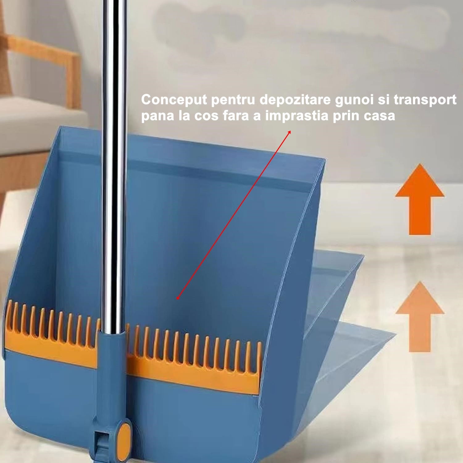 Set matura si faras cu coada cu dinti de pieptene pentru curatare matura, rotativ, pliabil, detasabil, otel inoxidabil si polipropilena, albastru