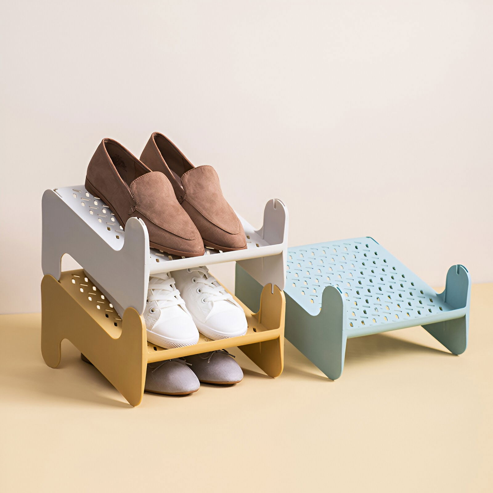 • Depozitare stabilă: Acest suport pentru pantofi cu două straturi asigură că pantofii dumneavoastră rămân pe loc și nu vor aluneca. Este o soluție de depozitare convenabilă și stabilă, ușor de pliat și utilizat.