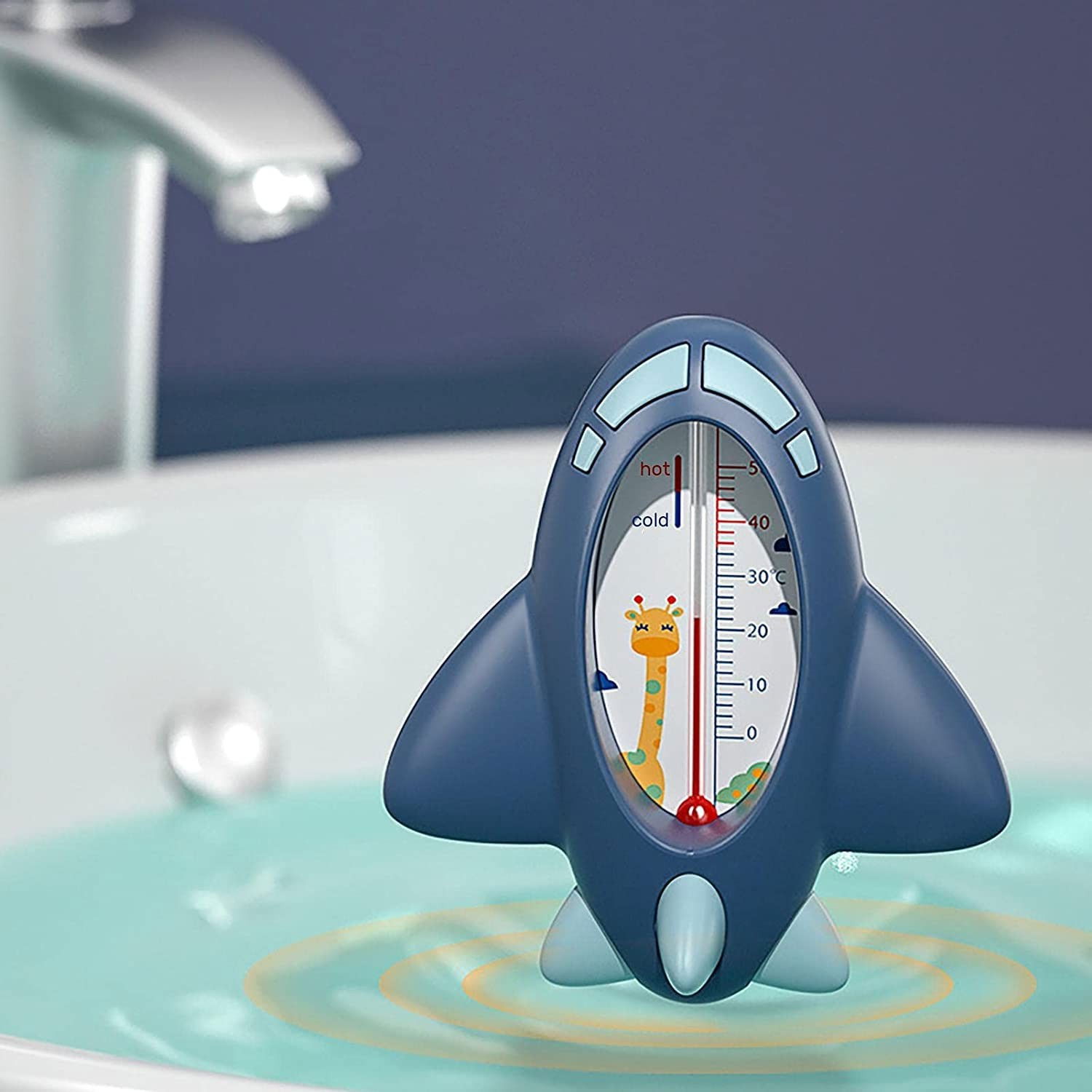 Termometru pentru baie, plutitor, rezistent la apa, multifunctional, model avion, 11x10x4 cm, albastru