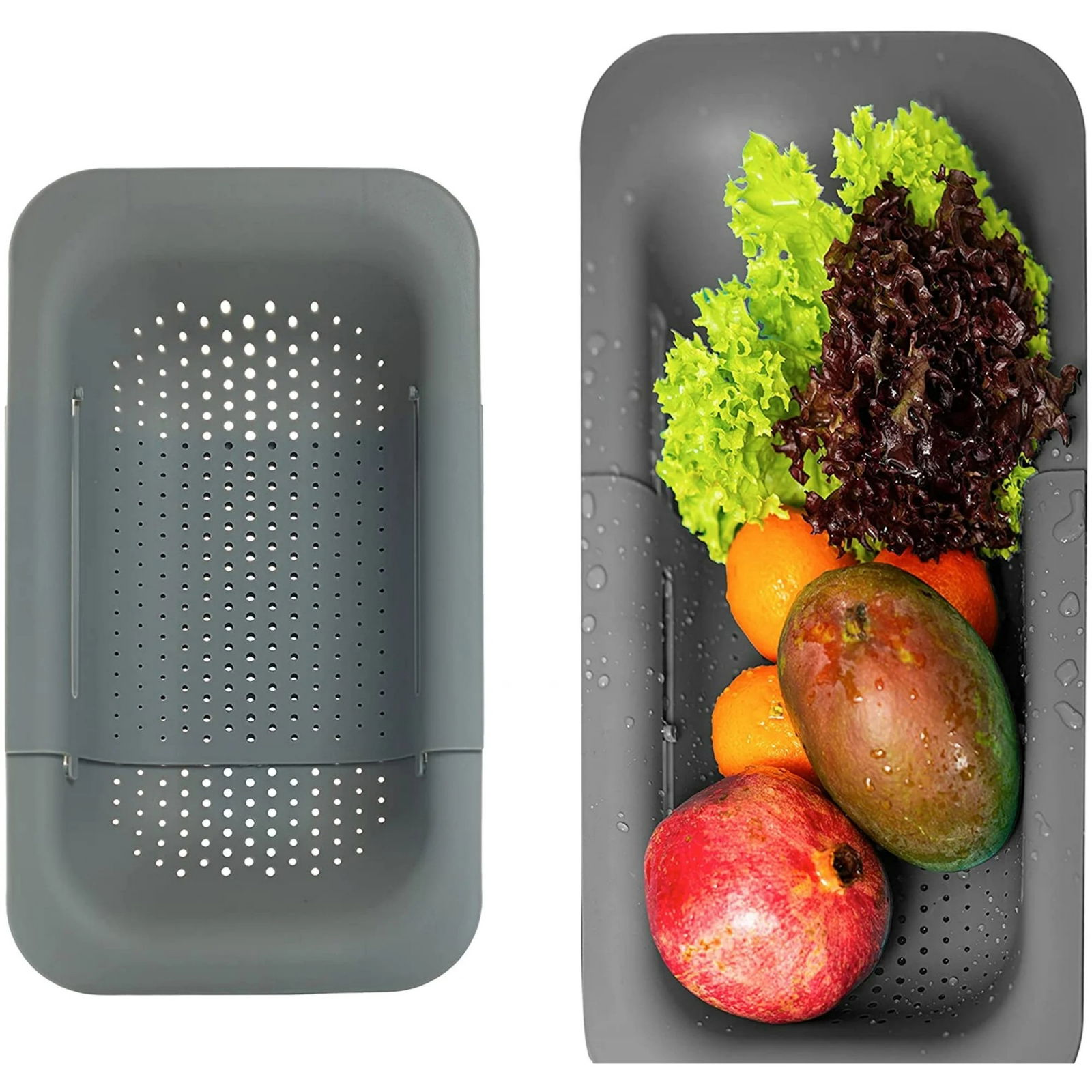 Coș de Scurgere pentru Chiuveta de Bucătărie, Plastic, Telescopic, 36x20x5 cm, Gri