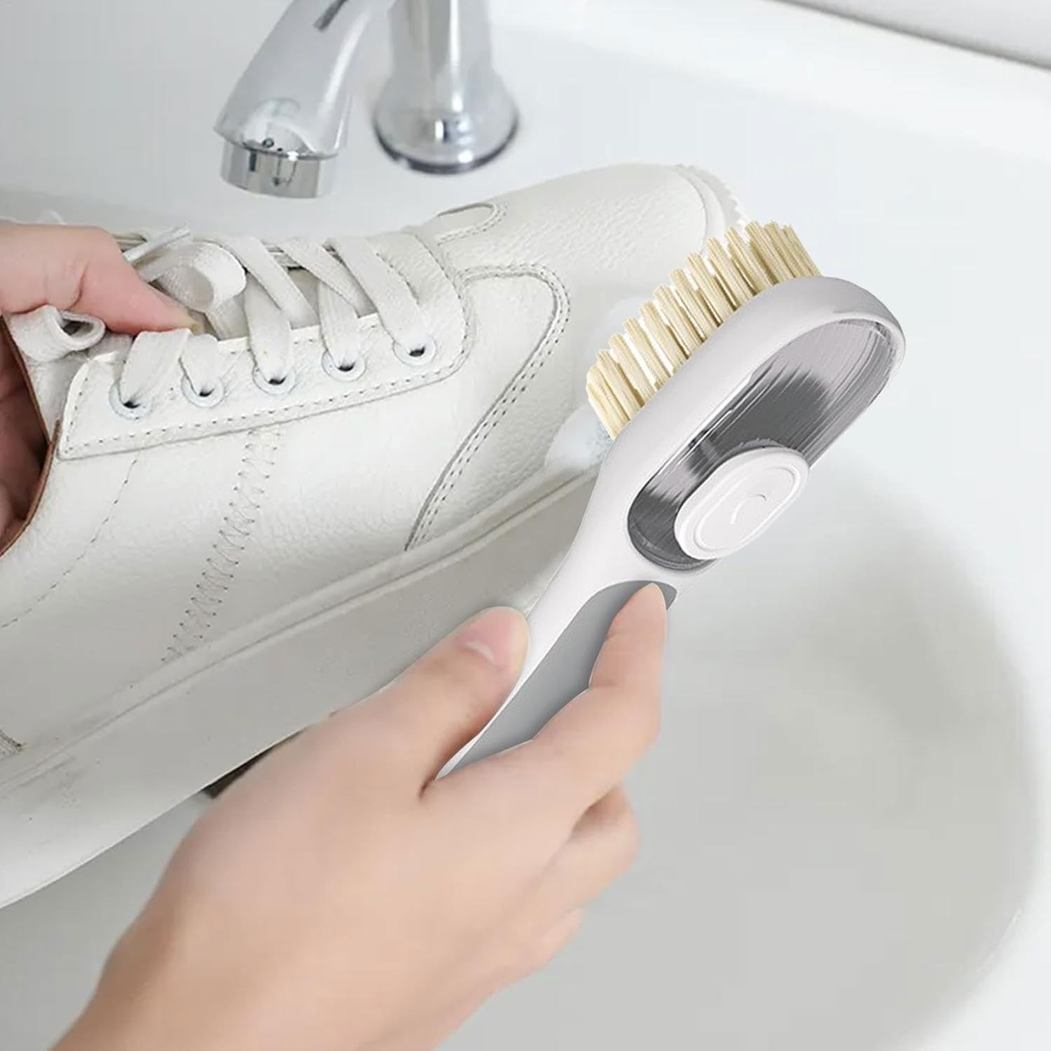 Această perie multifuncțională este alegerea ideală pentru curățarea rapidă și eficientă a pantofilor și a altor suprafețe. Cu un mâner ergonomic lung și un recipient integrat pentru lichid, îți permite să aplici soluția de curățare direct pe suprafață, economisind timp și efort.