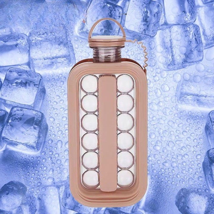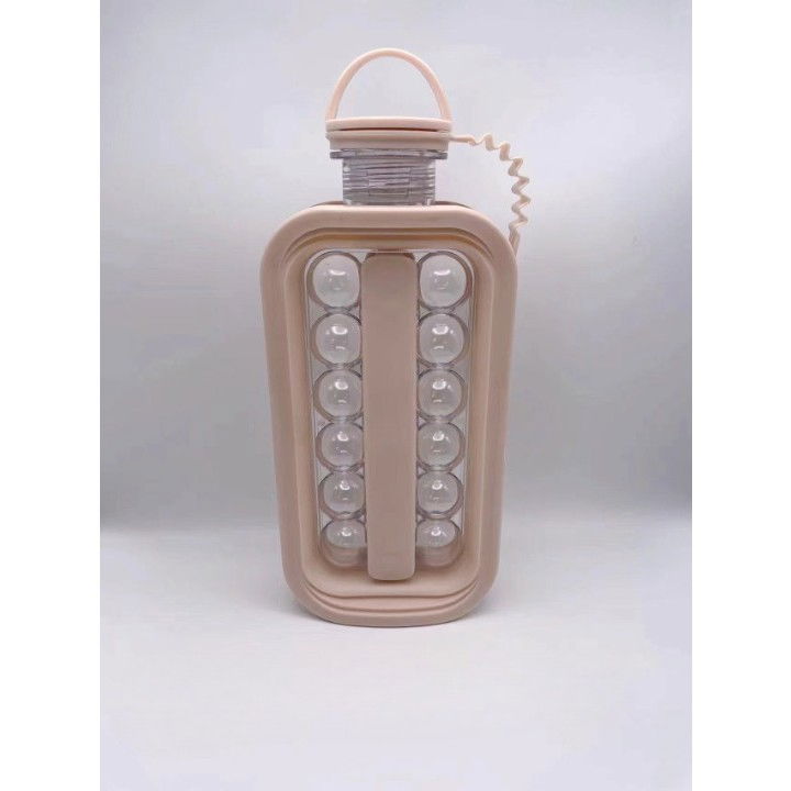 Forma pentru gheata 2 in 1 portabila, sub forma de sticla, sfere, diametru 3 cm, multifunctional, 17 bilute, 27.5 x 11.4 x 5.5 cm, culoare roz pal