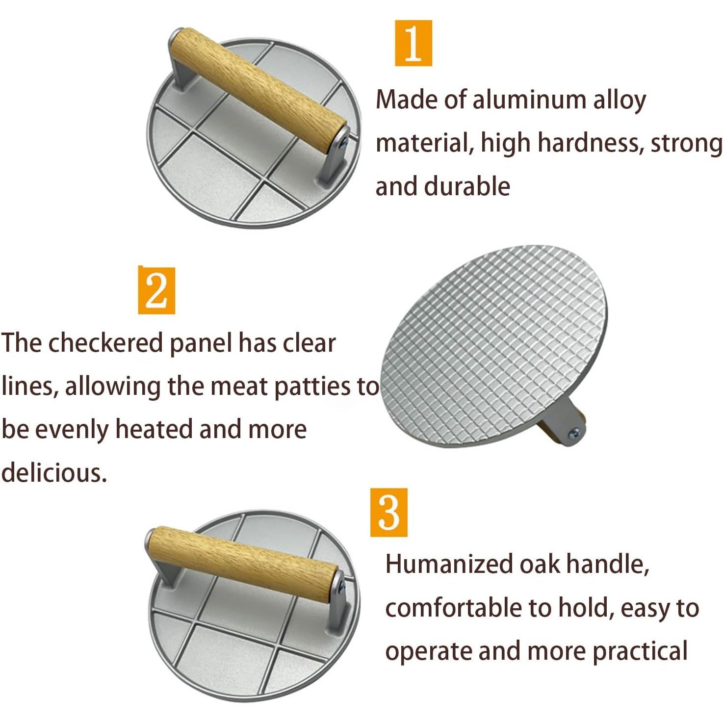 Descoperă arta preparării burgerilor perfecți cu presa manuală pentru carne , un instrument esențial în orice bucătărie. Fabricată dintr-un aliaj de aluminiu de înaltă calitate, această presă este durabilă și rezistentă, garantându-ți o utilizare de lungă durată. Mânerul din lemn nu doar că oferă un aspect elegant, dar asigură și confortul necesar în timpul utilizării, permițând o prindere fermă și sigură.