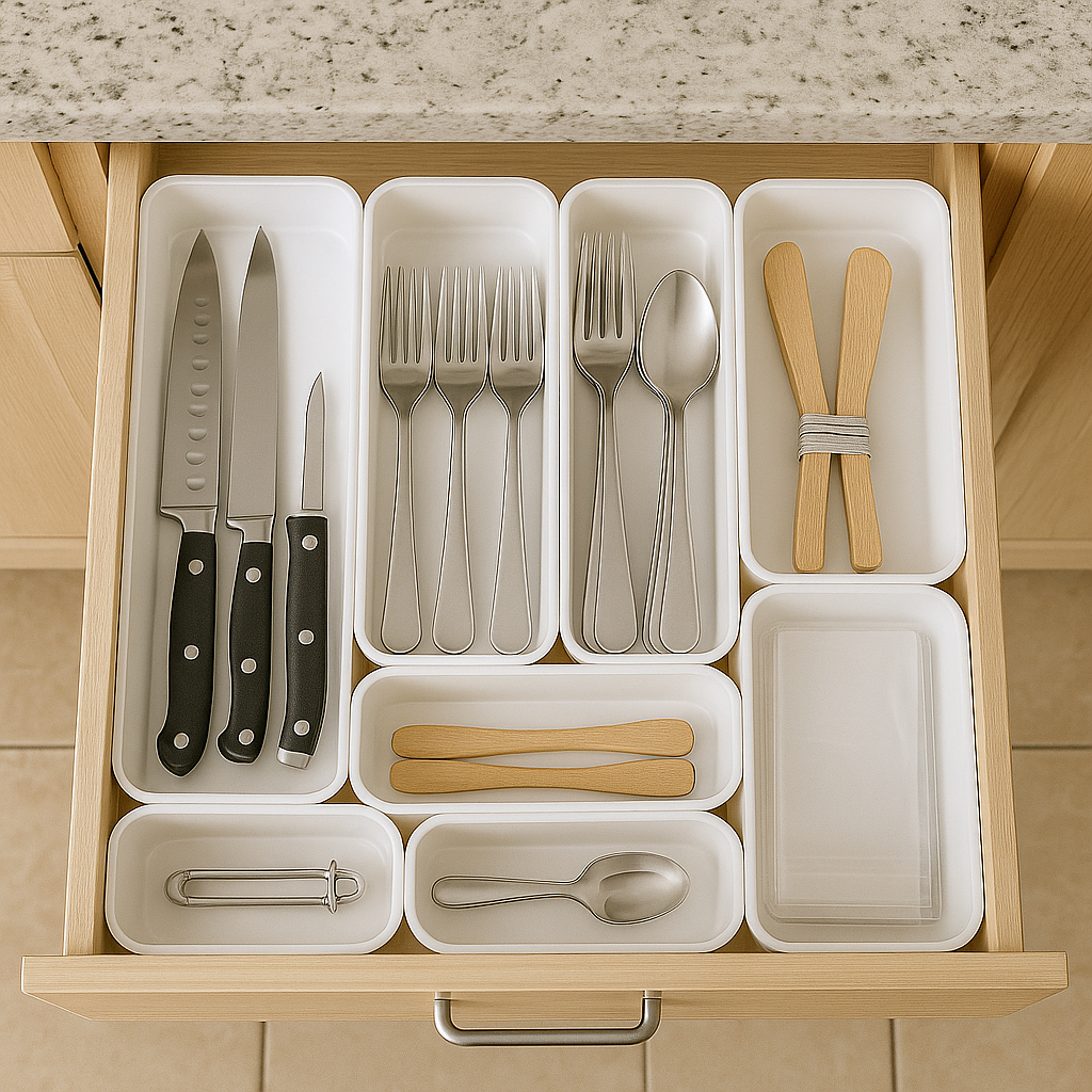 Știm cât de repede se poate transforma bucătăria într-un spațiu care ne stresează. Farfurii adunate, ustensile împrăștiate, sertare aglomerate. Totul pare să nu aibă loc. Pentru cineva cu un stil de viață activ, timpul pierdut căutând „unde ai pus acel cuțit” devine frustrant.