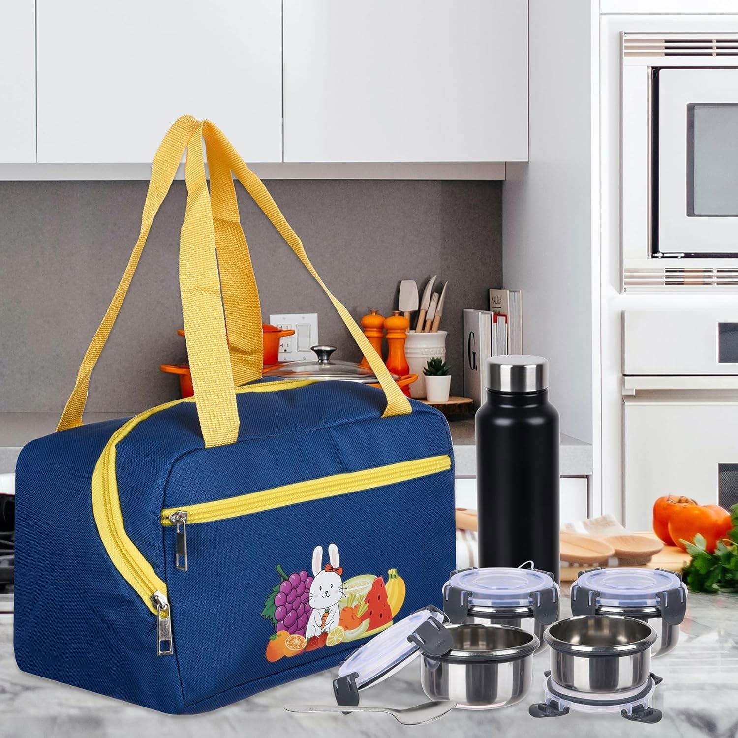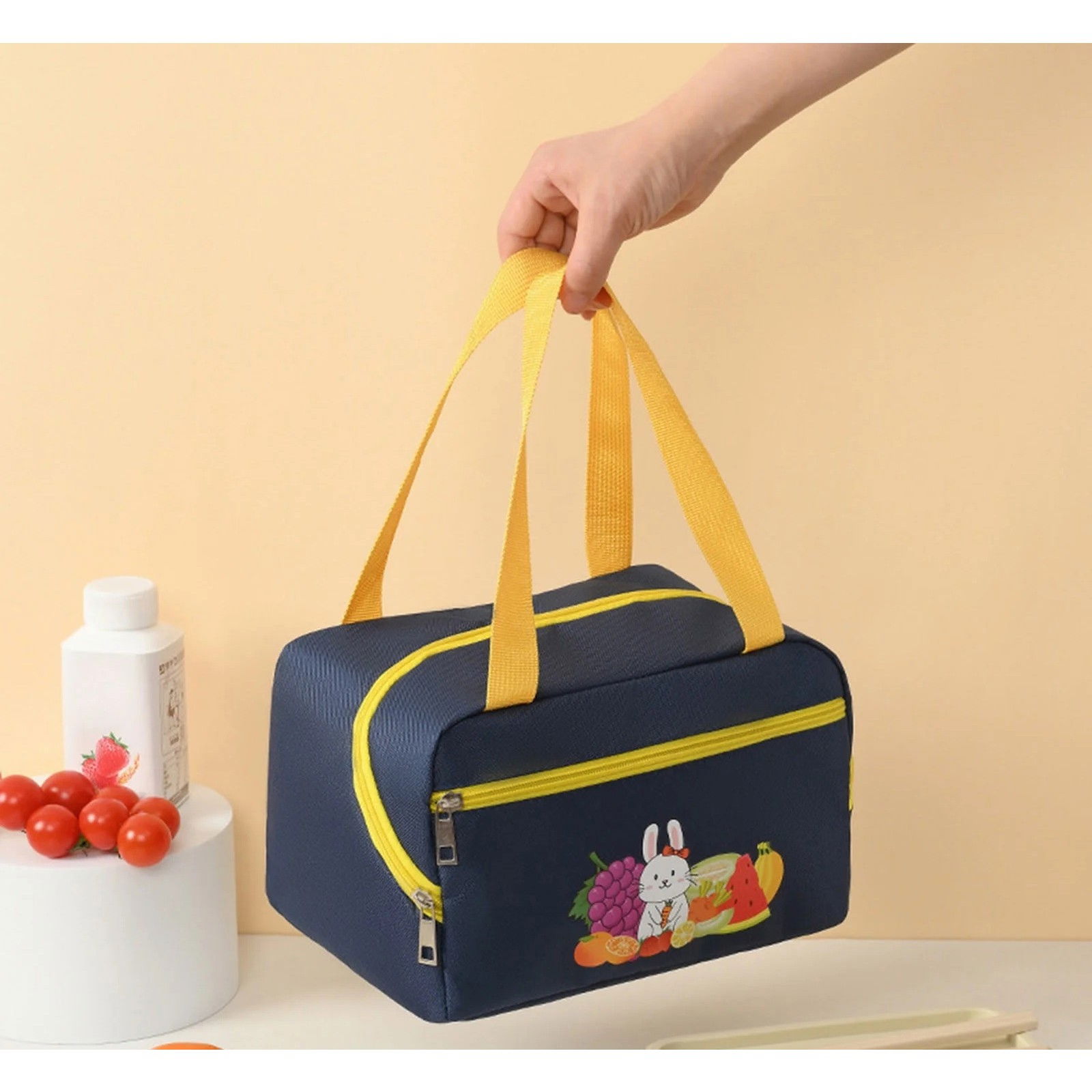 Geantă Termo-Izolantă , cu Compartimente pentru Telefon și Tacâmuri, 30 x 21 x 20 cm, Design Iepuraș, Albastru