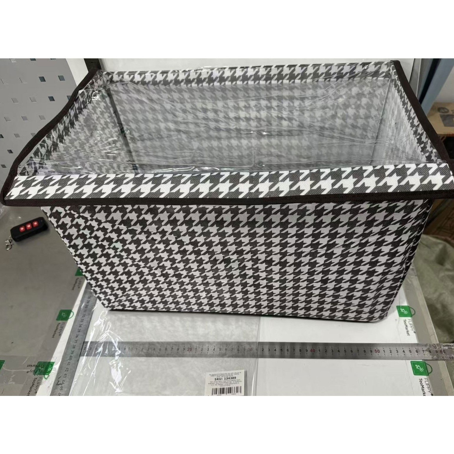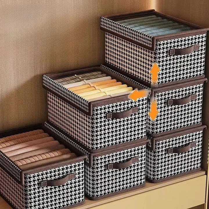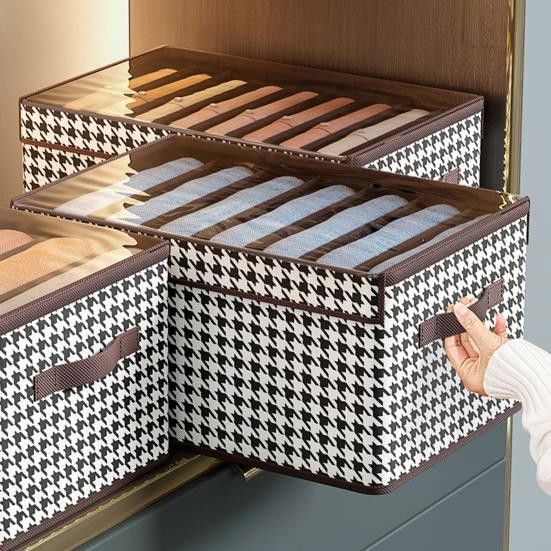 Păstrați-vă hainele și accesoriile organizate cu stil. Cutia de depozitare cu capac transparent și model în carouri este ideală pentru orice spațiu, oferind suprapunere ușoară și protecție împotriva umezelii și prafului.
