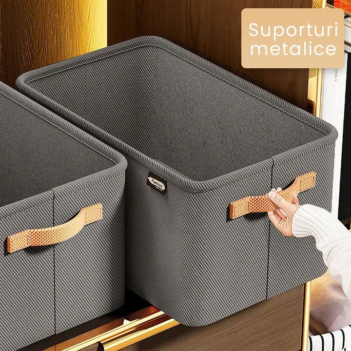 Cutie Depozitare , pentru Haine, lucruri, din Textil cu Cadru Metalic, Manere Laterale, forma Dreptunghiulara, 42 x 28 x 25 cm, volum 29 L, Gri