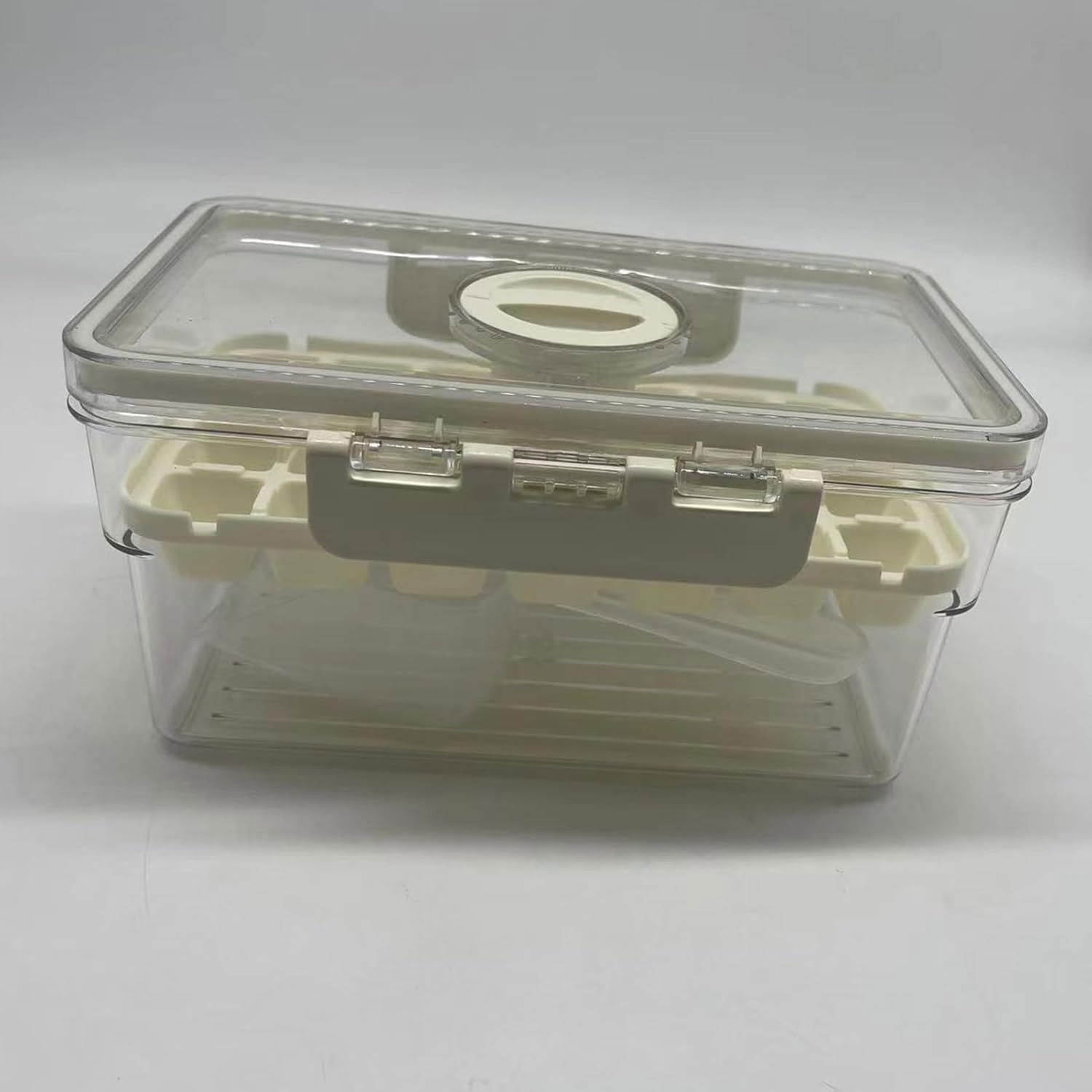 Formă de Gheață , Două Straturi, Închidere Etanșă, Material PP+PET, 19 x 12 x 9.5 cm, Bej