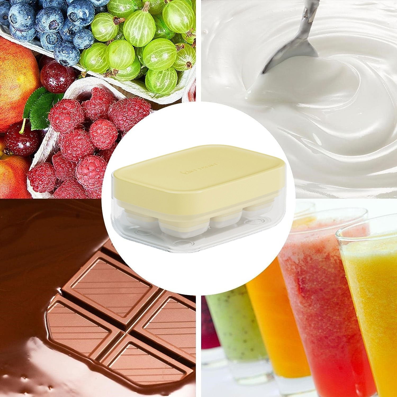 Forma pentru gheata cu presa , din silicon alimentar, 6 cuburi, caserola pentru depozitare, usor de folosit si curatat, 10.5 x 7.5 x 4.1 cm, galben