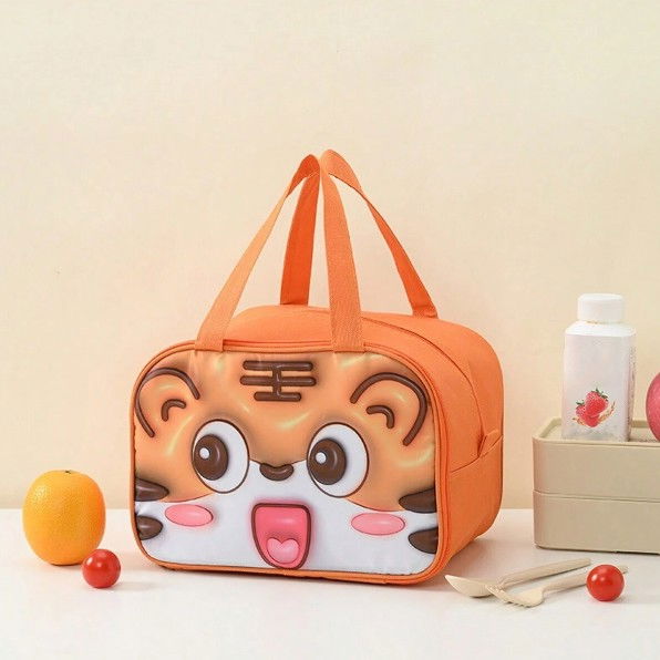 Geantă frigorifică, cu desene animat 3d, portabilă pentru copii, de prânz, din pânză oxford, 27.5x18x20 cm, model tigru, portocaliu