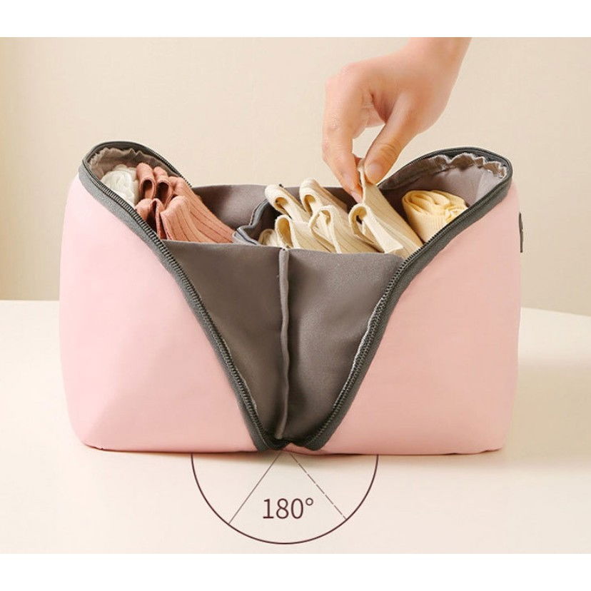 Geanta 3 în 1 este soluția perfectă pentru organizarea eficientă a lenjeriei, sutienelor și șosetelor, fie pentru acasă, fie pentru călătorii. Practică, elegantă și durabilă, această geantă îți va simplifica bagajele și îți va menține articolele intime bine organizate!