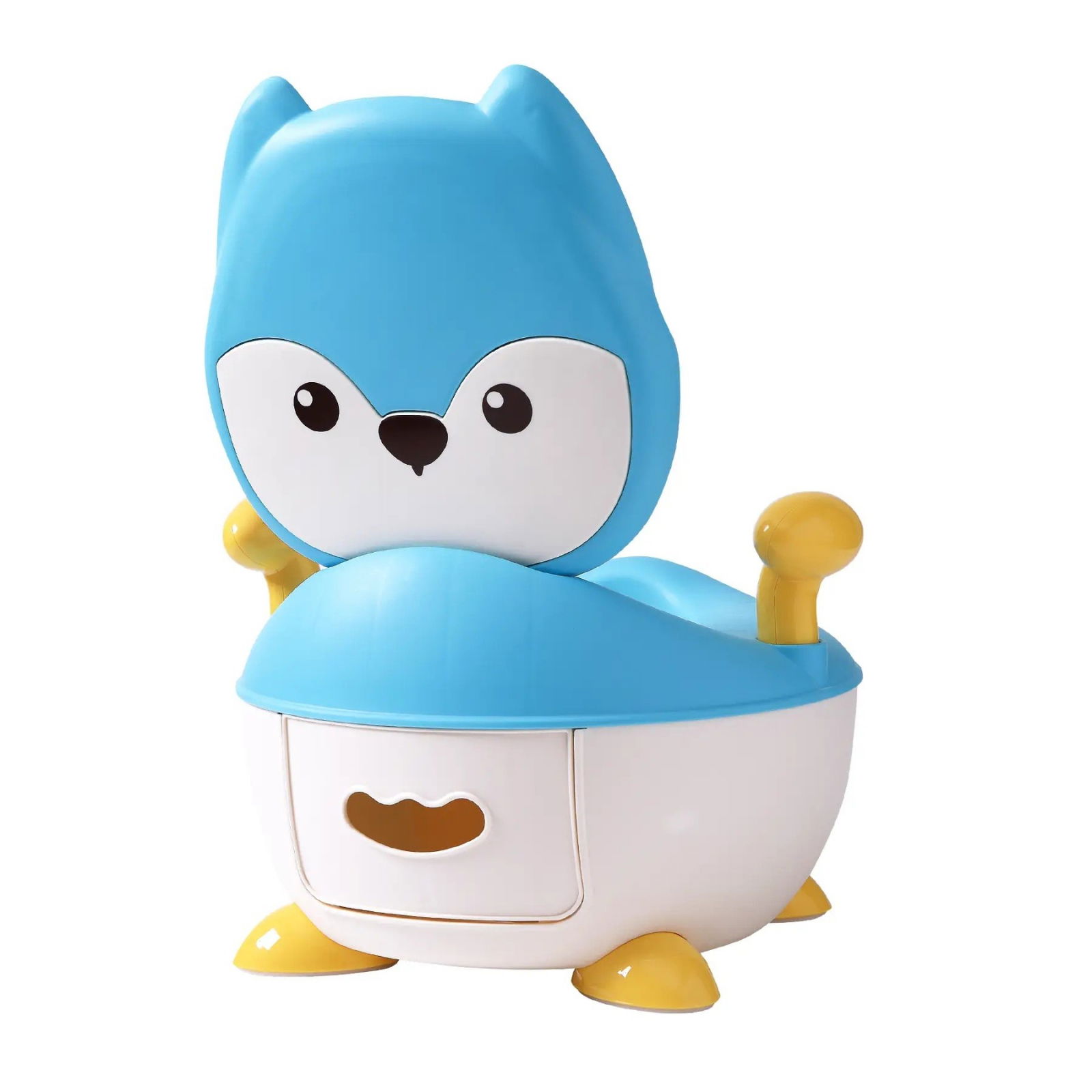 Oliță pentru Copii , +6 luni, Compartiment Detașabil, cu Capac, Antiderapantă, din Plastic, Colac Moale, Model Vulpe, cu Mânere, 34.5 x 35 x 23 cm