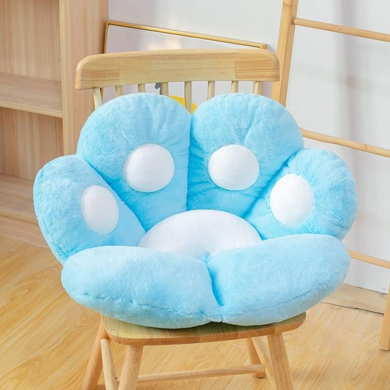 Perna decorativa, model laba de pisica, din plus, pentru scaun/canapea/podea, 80 x 70 cm, albastru deschis