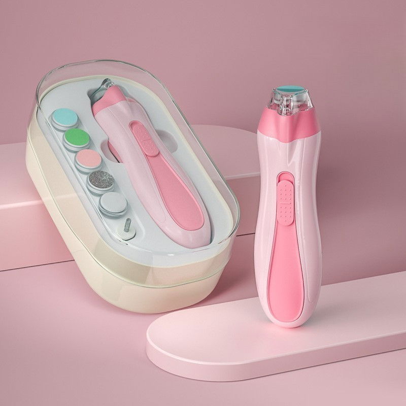 Pila electrica, pentru copii si bebelusi, din abs, 6 accesorii, cu lumina led, 9.5 x 6 x 17 cm, roz