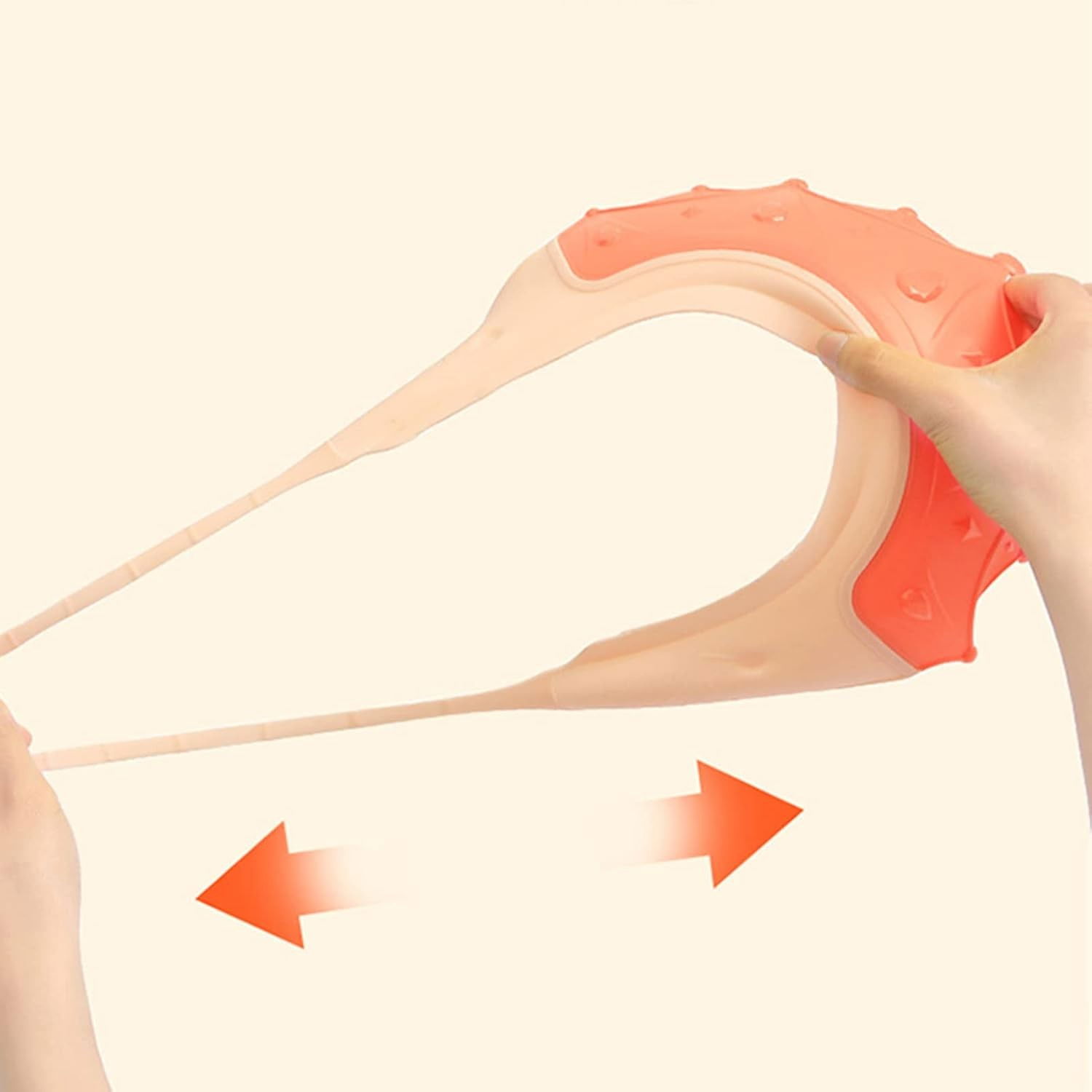 • Banda reglabilă: Echipată cu o bandă ajustabilă, viziera se potrivește perfect pe capul bebelușului, rămânând fixă în timpul mișcărilor sau jocurilor din cadă.