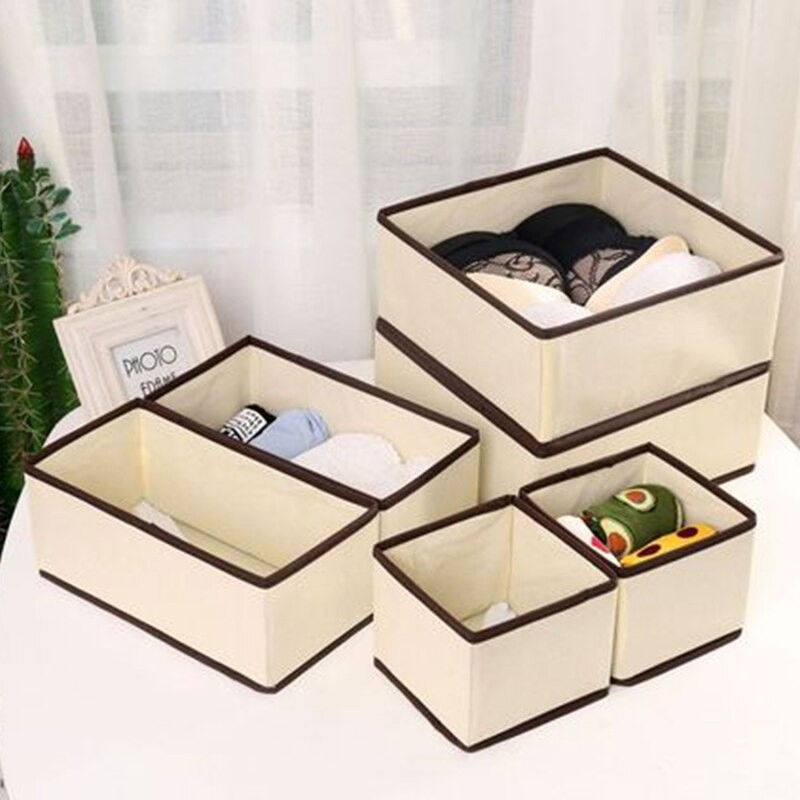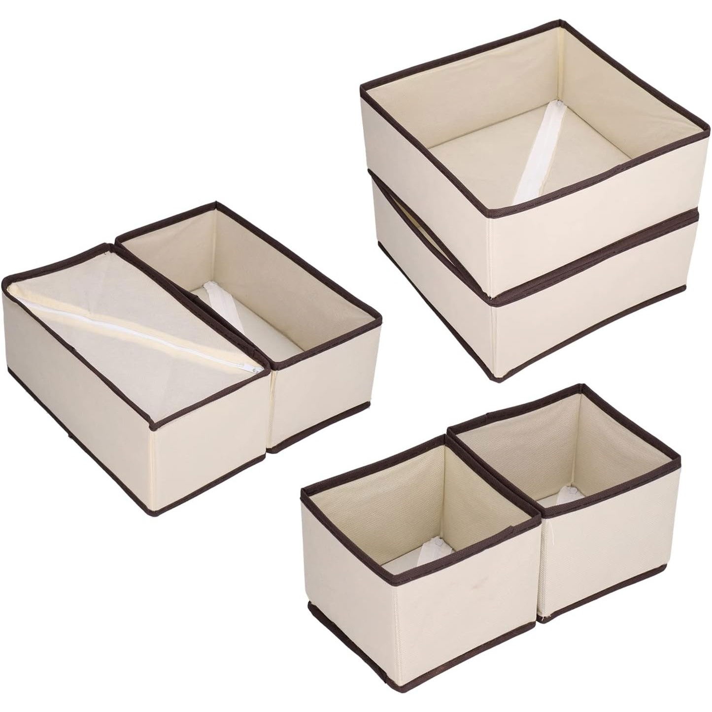 Organizator pentru Sertar, 3 Mărimi, pentru Lenjerie, Tricouri, Șosete, Set 6 Piese, Pliabil, Stivuibil, din Țesătură