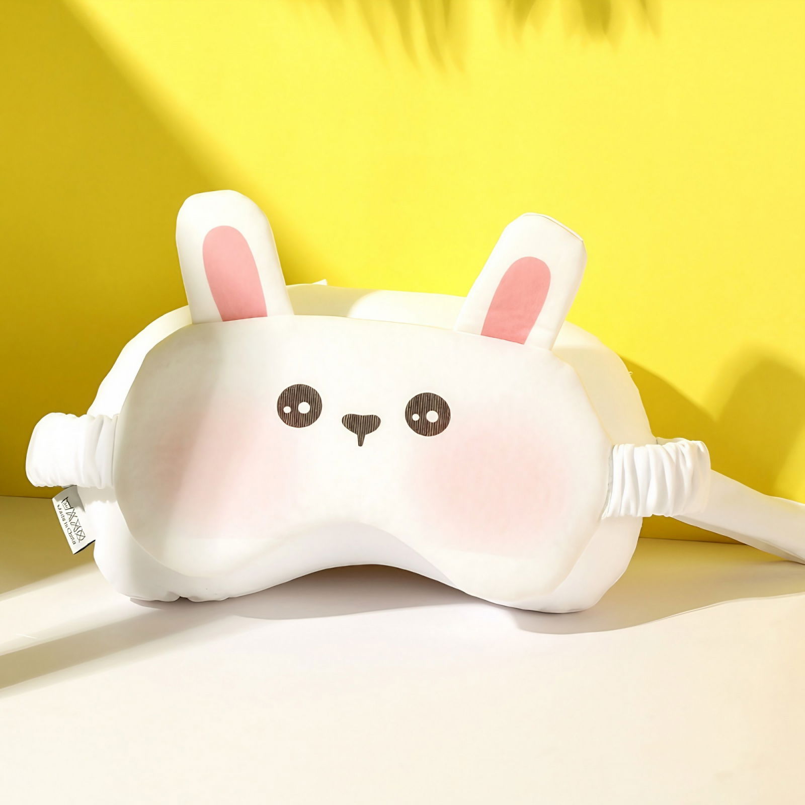 Masca de dormit, 2 in 1, cu Tetiera, din Particule de Spuma si Bumbac, Model Iepure, Alb