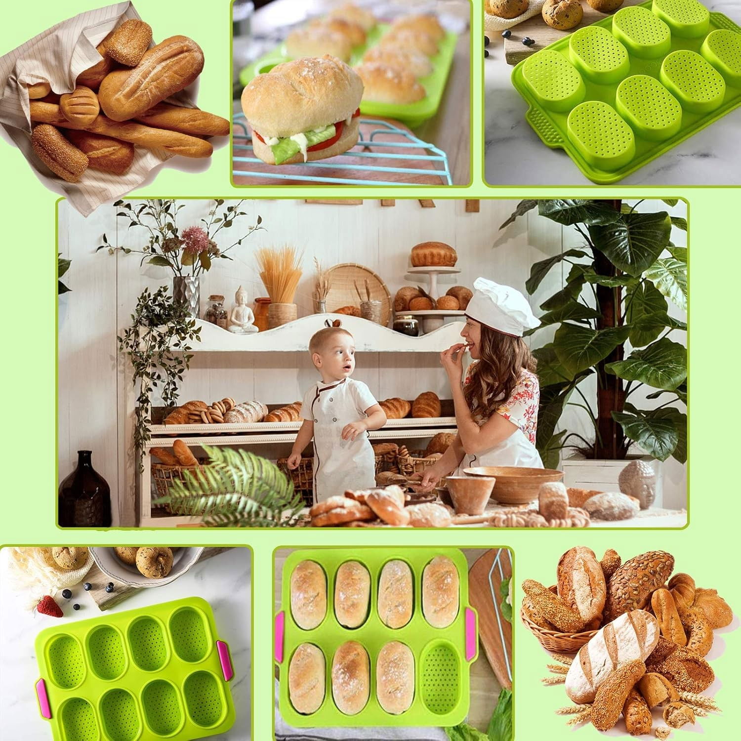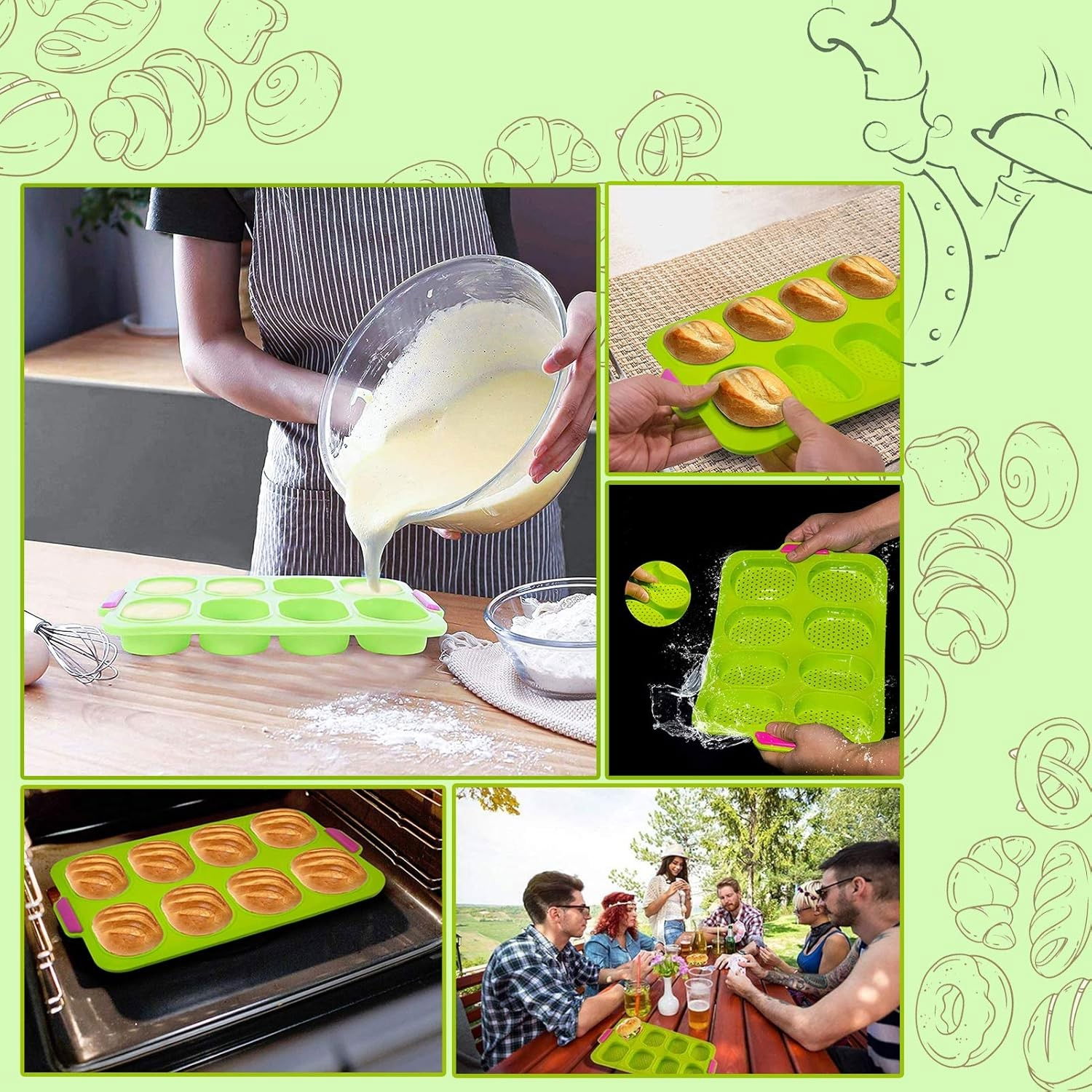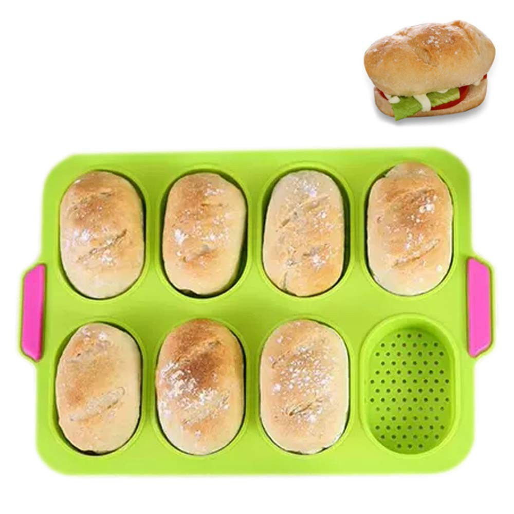 Forme de Silicon pentru Copt , 8 Forme Ovale, pentru Pâine și Prăjituri, 34.5 x 23.8 x 2.5 cm