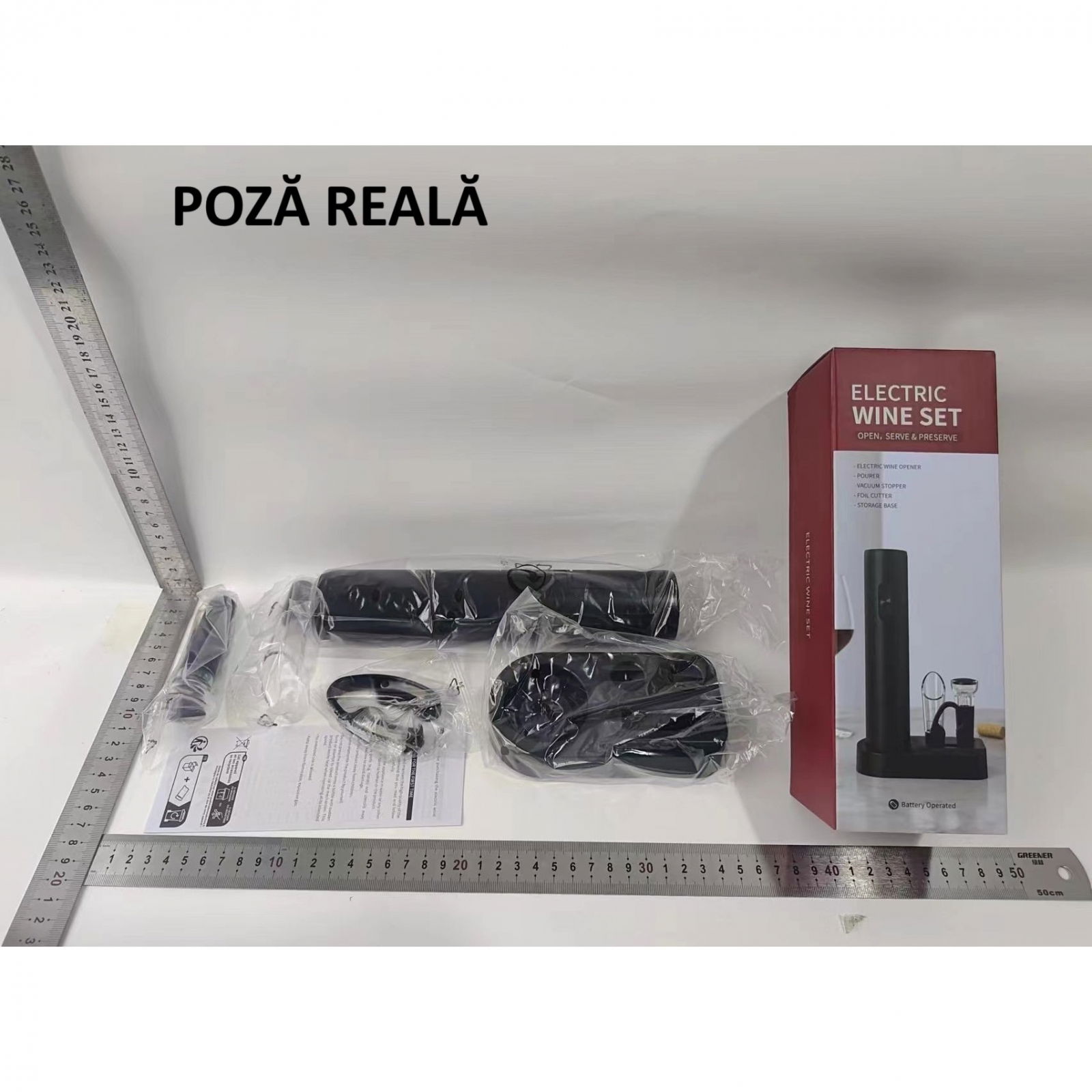 Set tirbuson electric din 5 piese, deschizator electric, cu baterii, multifunctional, 23x14cm, negru