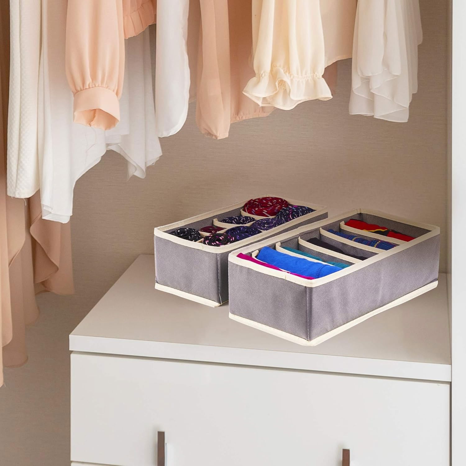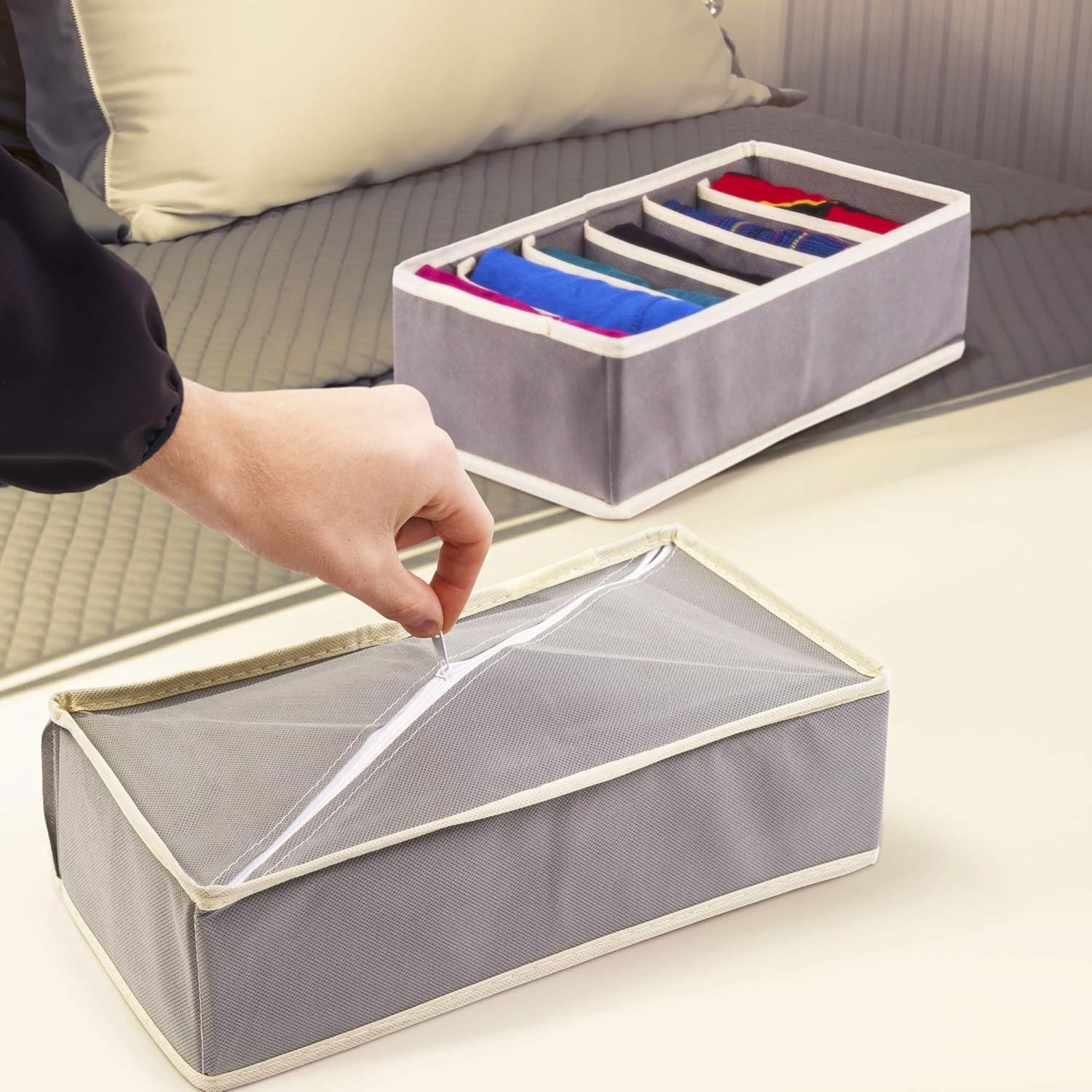 Cutie de Depozitare , pentru Lenjerie, Șosete și Sutiene, Material Textil, 6 Compartimente, 32 x 16 x 10 cm, Culoare Gri