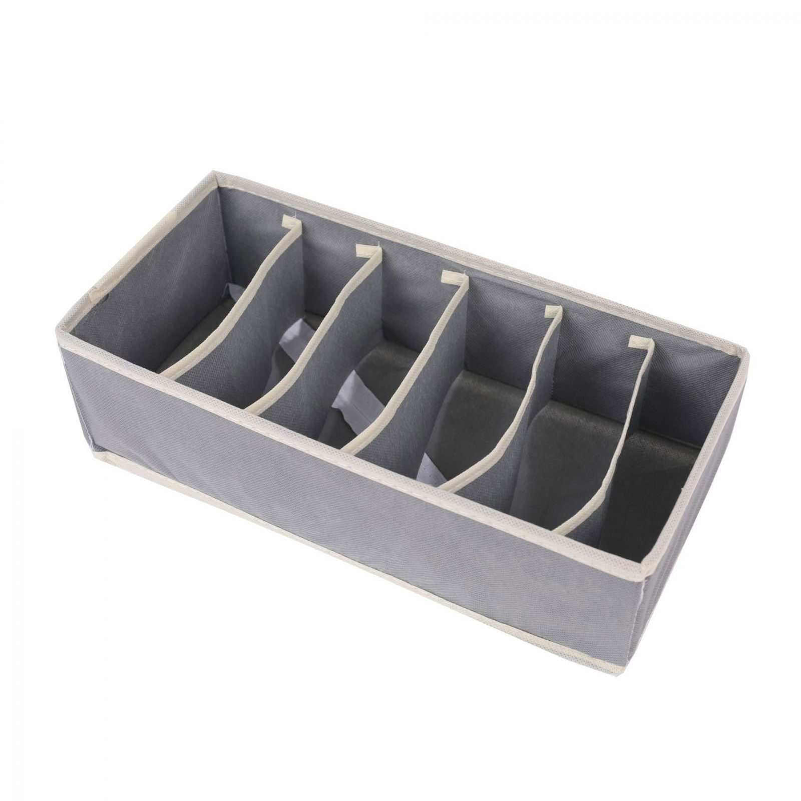 Cutie de depozitare, pentru lenjerie, sosete si sutiene, material textil, 6 compartimente, 32 x 16 x 10 cm, culoare gri