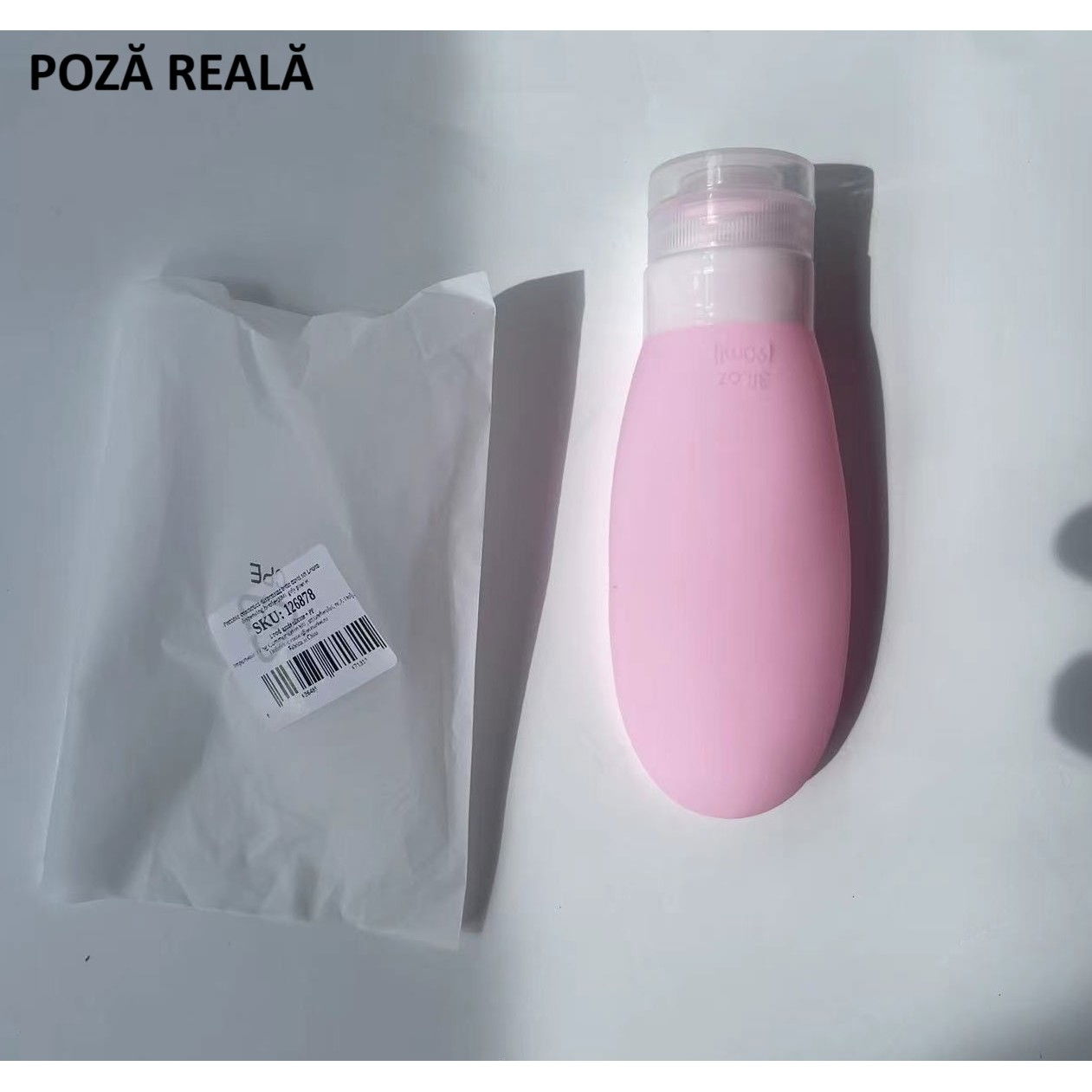 Recipient Portabil din Silicon Elegant, Sticla de Calatorie, Potrivita pentru Lotiune, Sampon si Alte Lichide, Anti-scurgere, cu Posibilitate de Reumplere, Capacitate 90mL, Roz