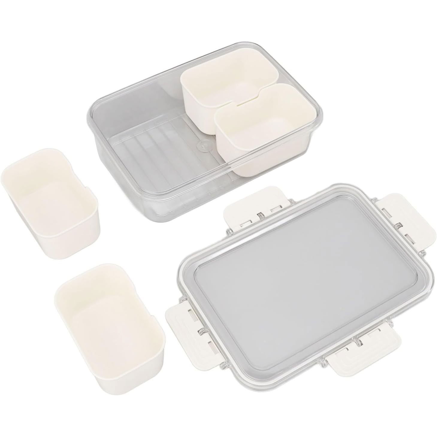Cutie Alimentară Multifuncțională , pentru Condimente și Gustări, Închidere Etanșă, cu Capac și Mâner, 4 Compartimente, 25 x 8 x 18 cm, Alb