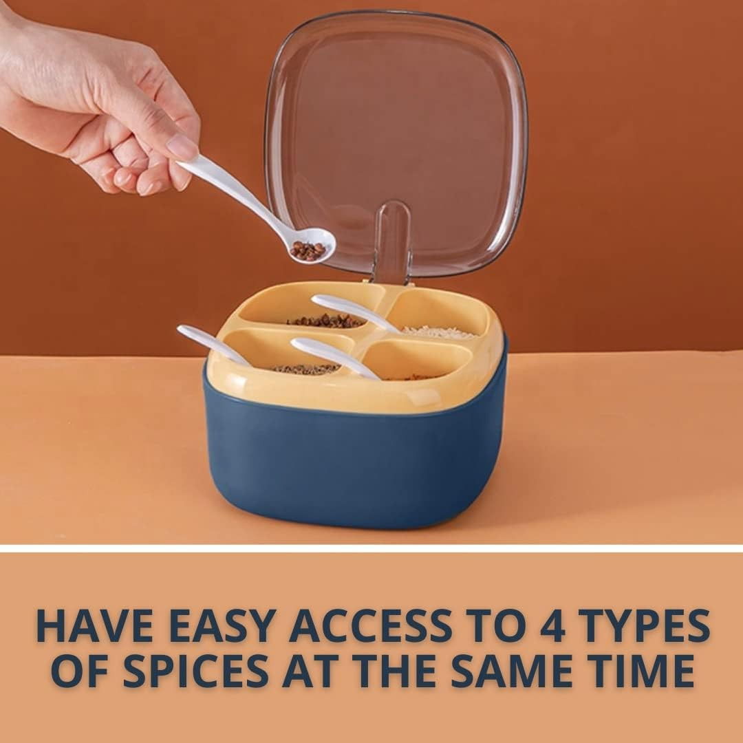 : Acest recipient dispune de 4 casuțe separate, care permit depozitarea și organizarea condimentelor, precum sare, cimbru, piper și alte condimente preferate. Astfel, vei putea găsi rapid condimentele dorite și vei evita amestecarea lor.