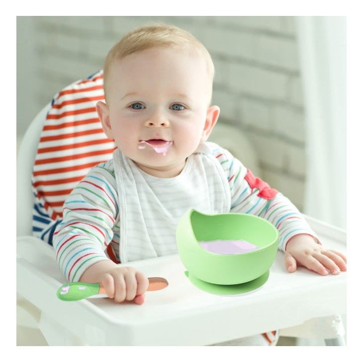 Estetică atrăgătoare: Setul vine într-o nuanță delicată de verde, care este apreciată de către cei mici și care poate stimula interesul pentru mâncare. Designul atrăgător, cu componente jucăușe și prietenoase, poate face ca procesul de a mânca să devină o experiență distractivă și plăcută pentru copii, contribuind la crearea unui mediu pozitiv în jurul mesei.