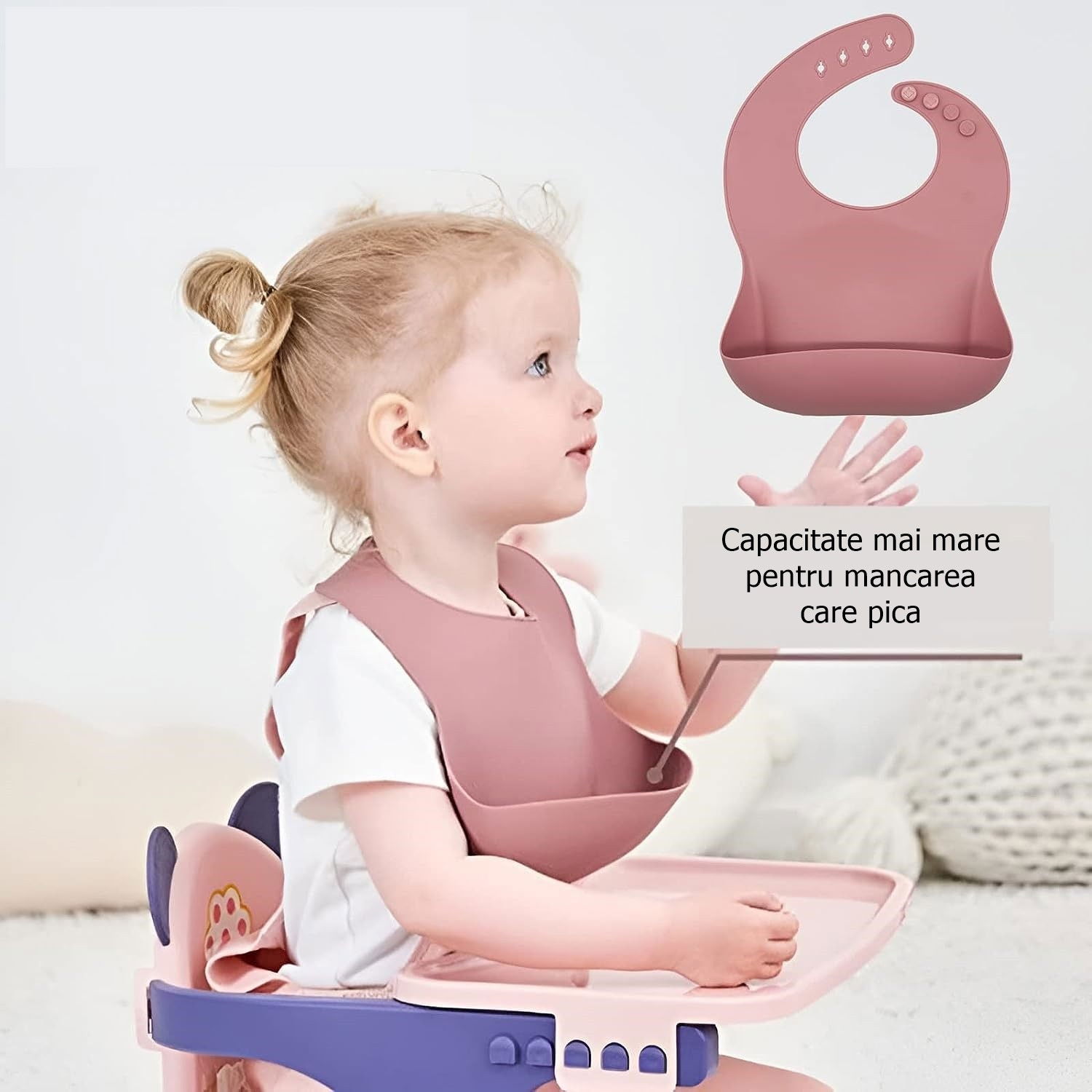 Siguranță maximă pentru copii: Materialele de înaltă calitate din care sunt fabricate componentele setului sunt non-toxice și lipsite de alergeni, asigurând astfel siguranța copiilor în timpul mesei. Siliconul moale și lemnul natural sunt alese cu grijă pentru a evita orice risc de iritații sau reacții alergice, oferind părinților încrederea că bebelușul lor primește alimentele în cele mai sigure condiții.