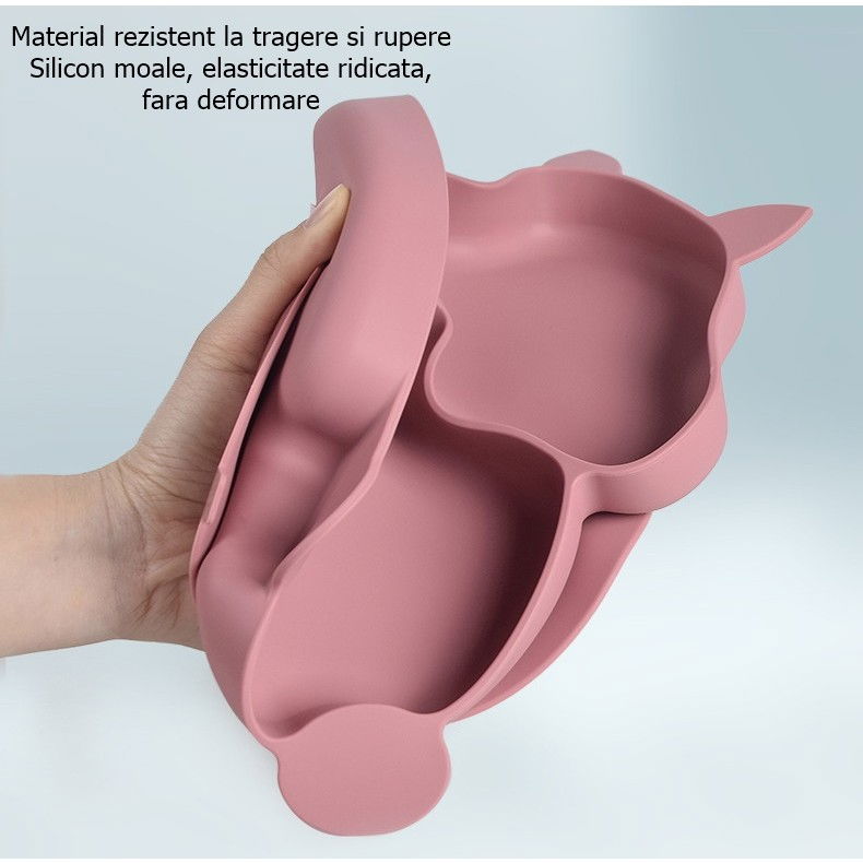 Estetică atrăgătoare: Setul vine într-o nuanță delicată de roz pudrat, care este apreciată de către cei mici și care poate stimula interesul pentru mâncare. Designul atrăgător, cu componente jucăușe și prietenoase, poate face ca procesul de a mânca să devină o experiență distractivă și plăcută pentru copii, contribuind la crearea unui mediu pozitiv în jurul mesei.