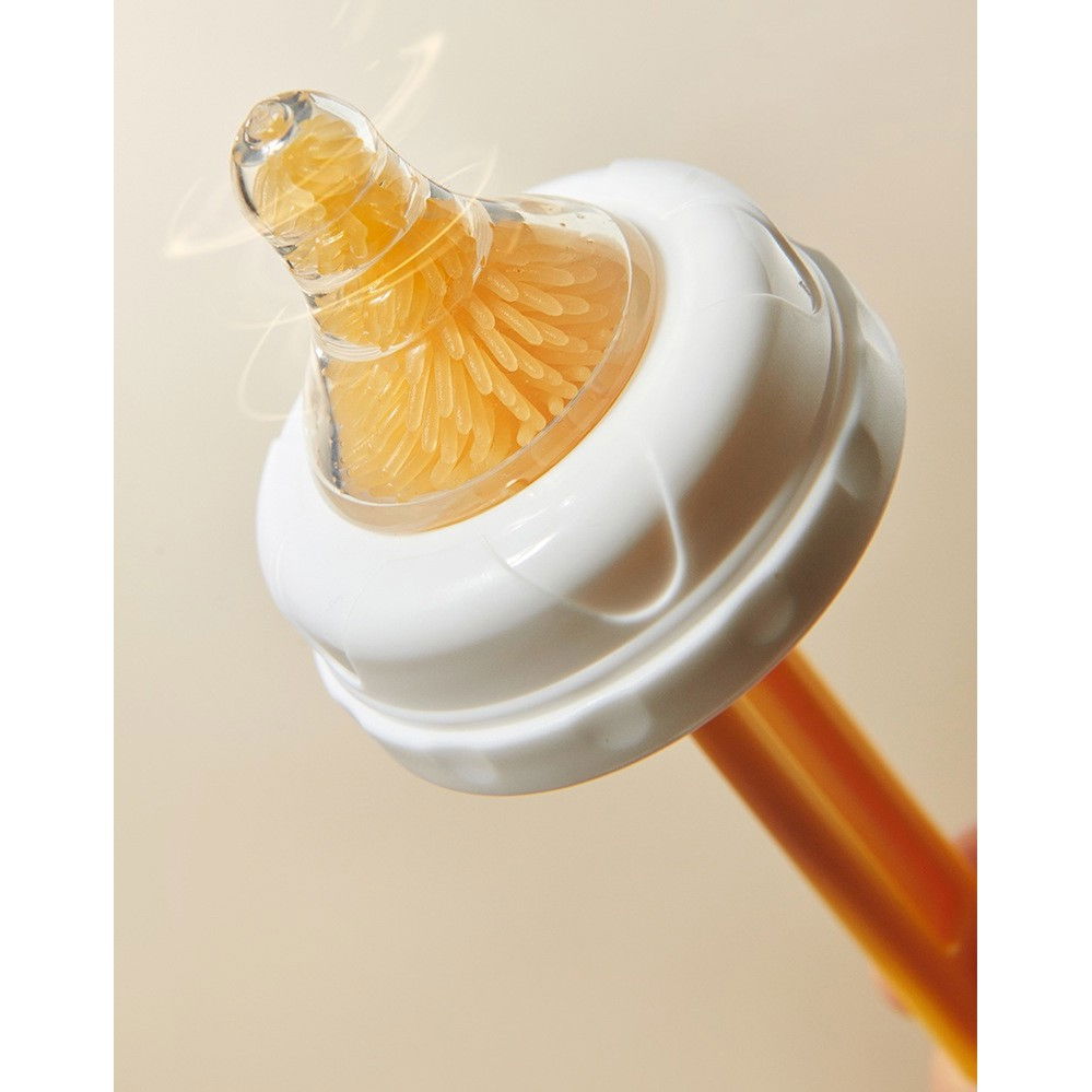 Set 7 piese de spalat/uscat biberoane, portabil, peri de silicon, pentru tetine, suzete, biberoane, paie, cutie inclusa, 16 x 11 x 5 cm, model ursulet, galben