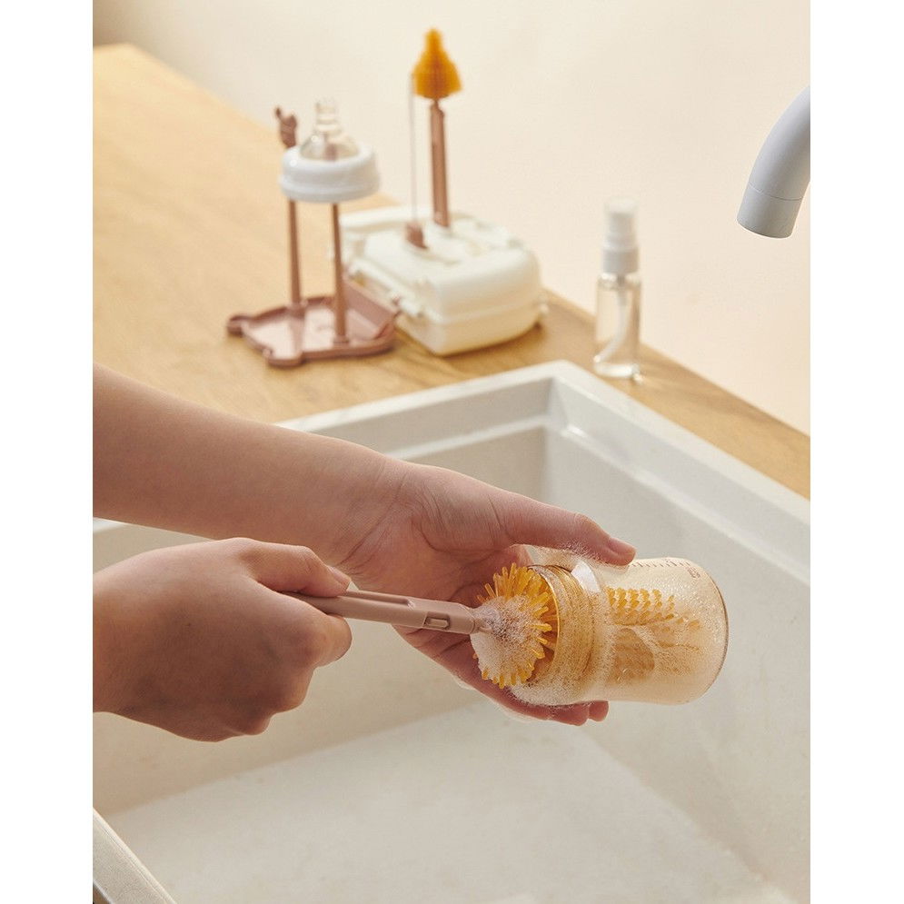 Set 7 Piese de Spălat/Uscat Biberoane, Portabil, Peri din Silicon, pentru Tetine, Suzete, Biberoane și Paie, Cutie Inclusă, 16 x 11 x 5 cm, Model Ursuleț