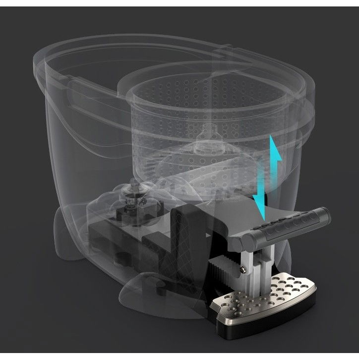 Stoarcerea mopului beneficiază de o dublă presiune, iar utilizarea unei pedale din aliaj de aluminiu asigură o stoarcere rapidă și o uscare mai eficientă.