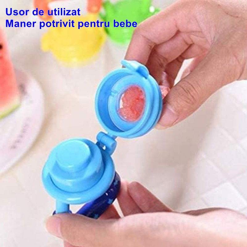 • Potrivită pentru Fructe și Piure Proaspăt: Suzeta are un design care permite să adaugi fructe sau piure proaspăt, oferind astfel copilului tău gustul și textura naturală a alimentelor.