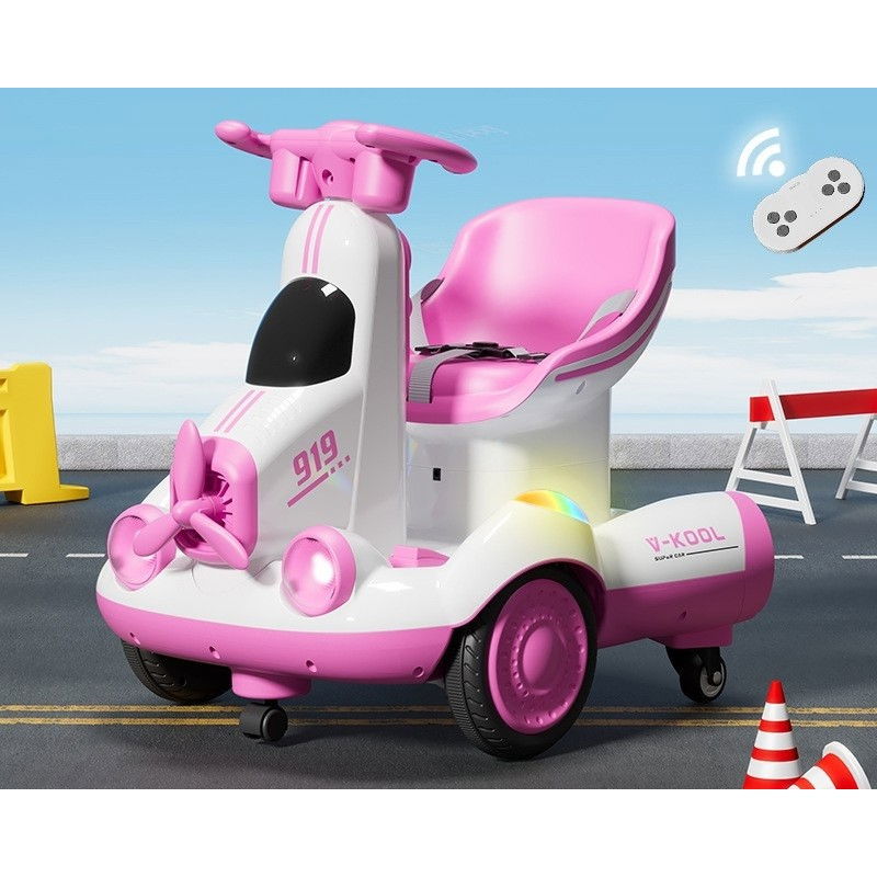 Masinuta electrica, pe 4 roti, cu telecomanda, lumini led si muzica, +2 ani, inaltime reglabila, roz